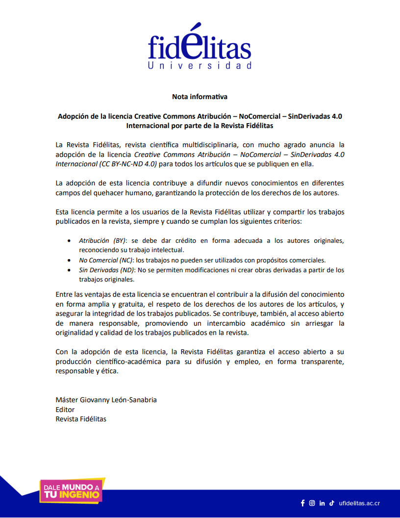ANUNCIOS - Espacio para comunicar información sobre la Revista Fidélitas